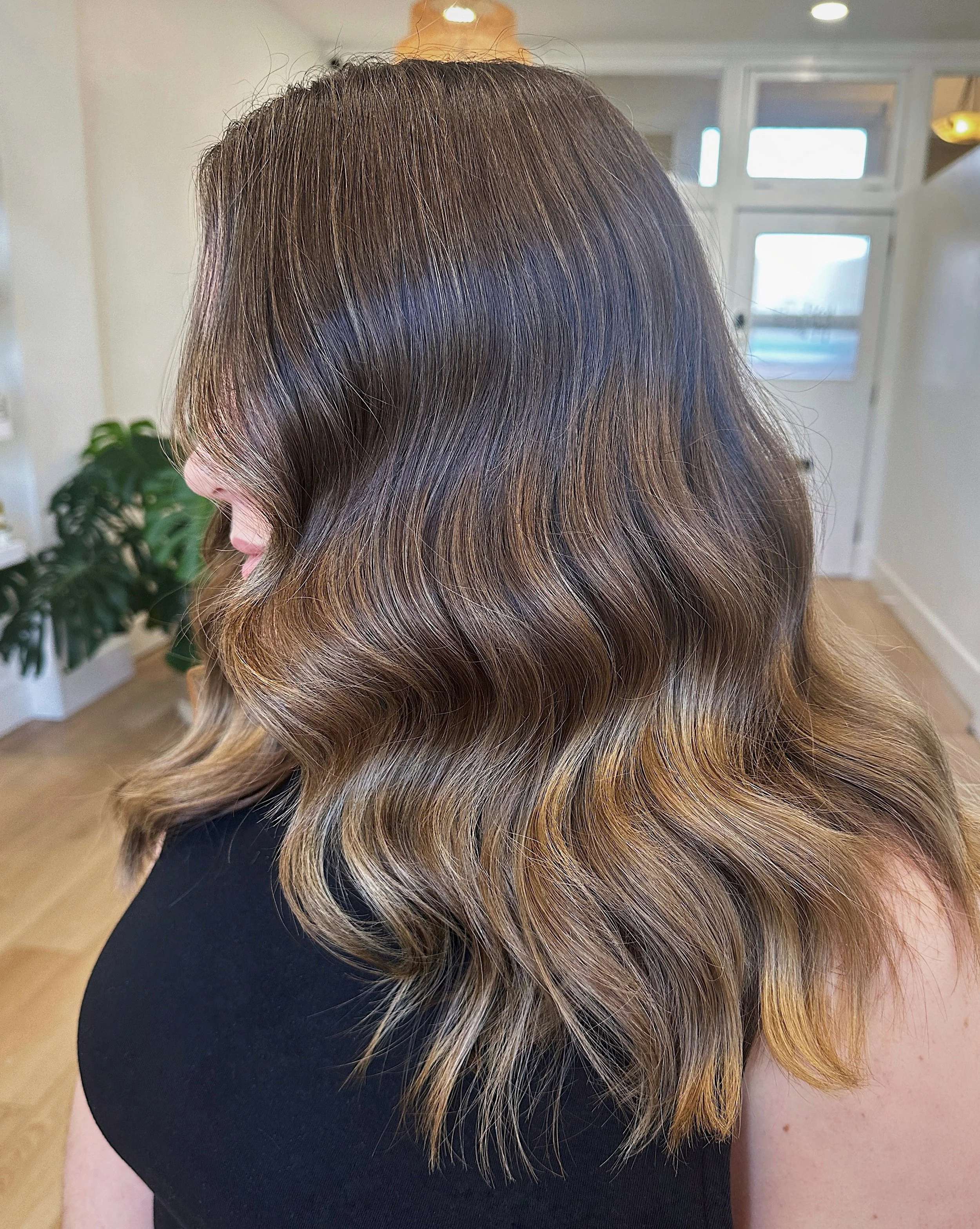 This service includes tonal refreshing between lightening services, brunette and clear glossing, shadow rooting, and a haircut or blowdry with down style.*Gloss with Blowdry Style only (no haircut, 1.5 hours) - $130+